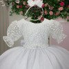 TECIDO TECNO SPORTINGTECIDO TULETECIDO RENDAS Confeccionado em tecido misto possui forro em poliéster e algodão para não incomodar a criança e proporcionando um caimento incrível e sofisticado, possui gola redonda, comprimento médio, mangas curtas, possui elástico nas costas para melhor ajuste, acabamento com lindo laço na parte posterior do vestido completa o look dos sonhos! * Medidas podem variar em até 4cm * Caso queira o vestido mais armado, recomendamos o uso do saiote ou anágua de armação, disponível no nosso site na categoria acessórios. * Tiara vendida separadamente, disponível em nosso site na categoria acessórios. * Calçados vendido separadamente, disponível em nosso site na categoria calçados. * LEMBRANDO QUE PODERA HAVER VARIAÇÃO DE TONALIDADE DO PRODUTO DEPENDENDO DA TELA DO SEU DISPOSITIVO